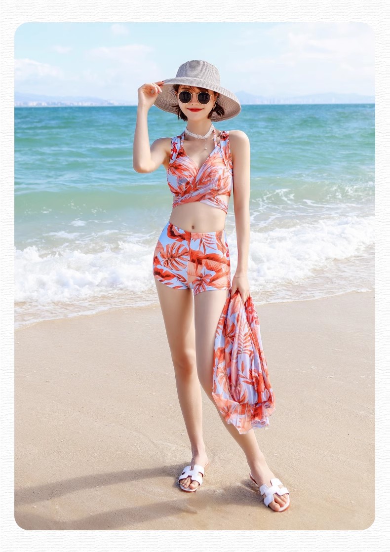 Set Đồ Bơi Nữ Rời Đùi Dài Tay Đi Biển Đi Bơi Chất liệu Polyester 88%, mật độ dệt vừa Áo có sẵn lớp đệm, hông áo có thể rút lên làm croptop cá tính