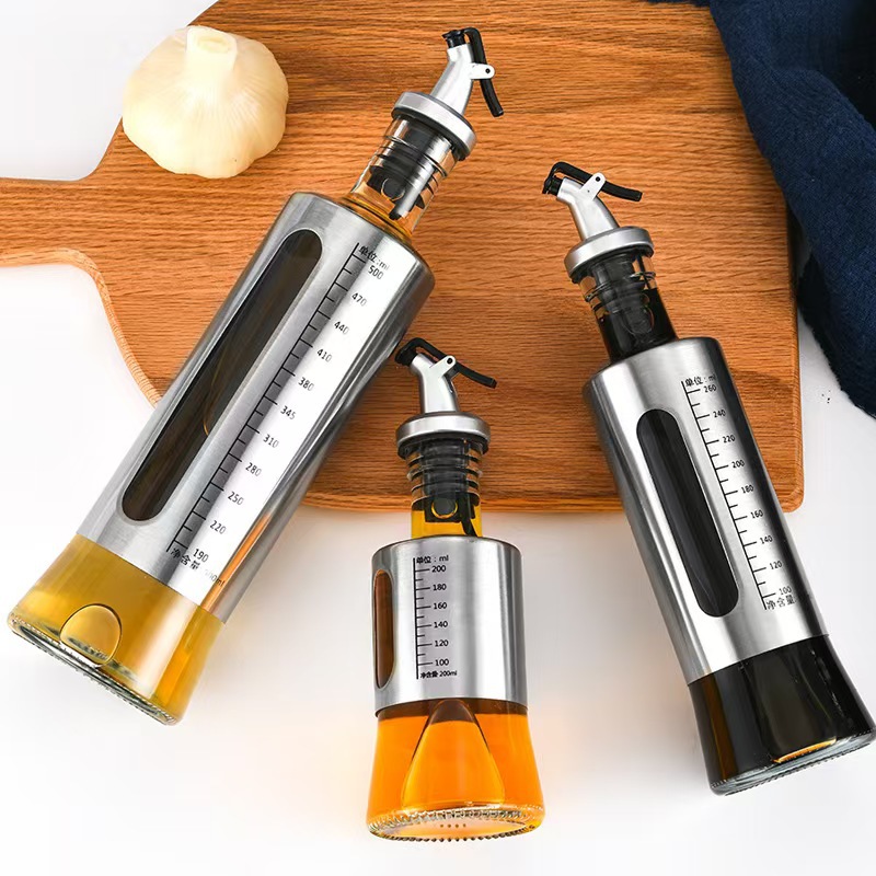Chai đựng dầu ăn, nước mắm thủy tinh bọc inox cao cấp – Giải pháp bảo quản và rót gia vị tiện lợi, sang trọng cho căn bếp của bạn.
