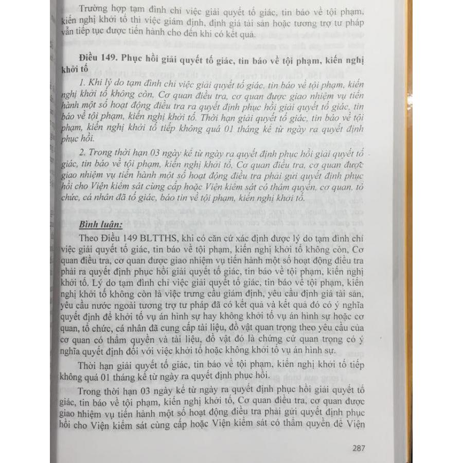 Bình Luận Khoa Học Bộ Luật Tố Tụng Hình Sự Năm 2015 (Tái Bản) Bộ luật tố tụng hình sự 2015 được Quốc hội thông qua ngày 27-11-2015, có hiệu lực từ ngày 1-1-2018. Việc