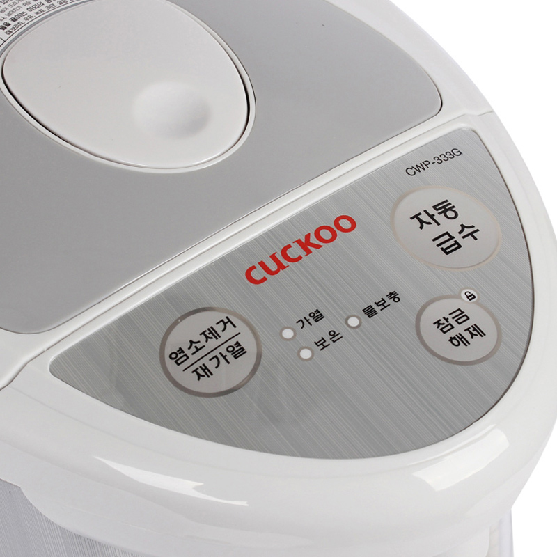 Bình thủy điện Cuckoo CWP-333G được thiết kế màu ghi đơn giản, dễ sử dụng, kích thước nhỏ gọn nên không chiếm nhiều diện tích không gian sử dụng.