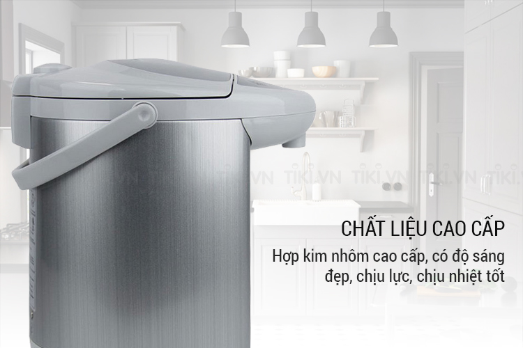 Thân bình được làm từ hợp kim nhôm cao cấp, có độ sáng đẹp, chịu lực, chịu nhiệt tốt, hạn chế sự bám bụi, giúp chị em nội trợ bảo quản dễ dàng. Chất liệu ruột bình được làm từ inox cao cấp, không gỉ, đảm bảo an toàn sức khỏe người dùng và tuổi thọ lâu dài của sản phẩm.