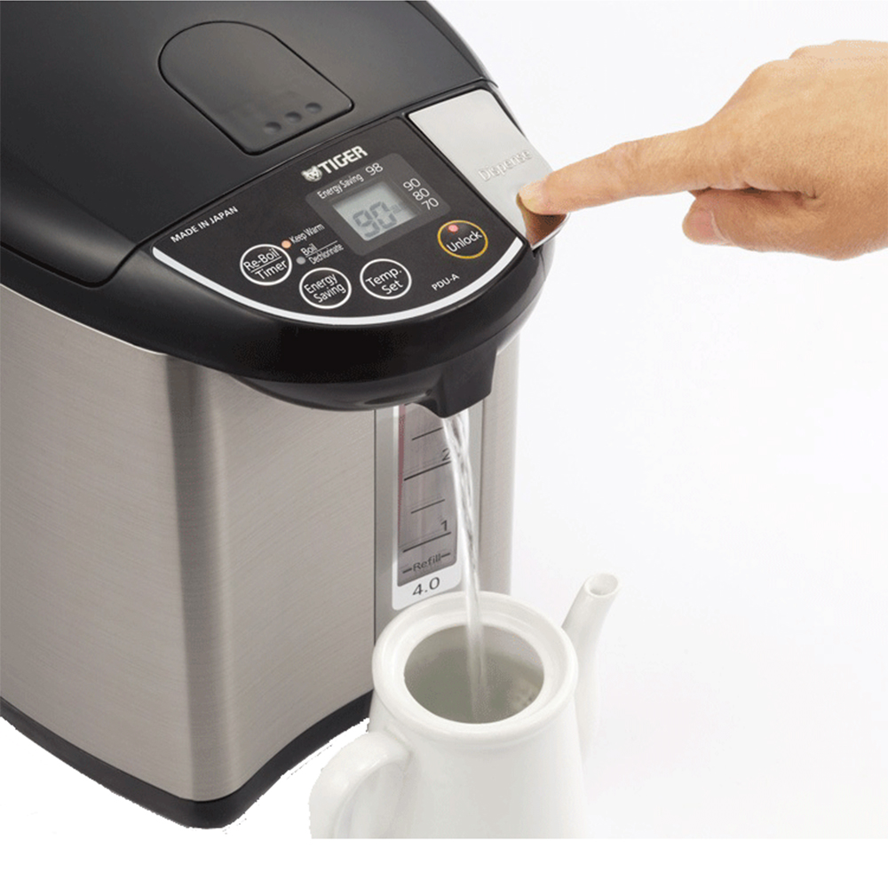 Bình Thủy Điện TIGER PDR-S40W Dung tích 4 lít – Nhiệt độ nước nóng có thể được điều chỉnh theo nhu cầu của bạn. Chọn từ 98 °C, 90 °C, 80 °C và 70