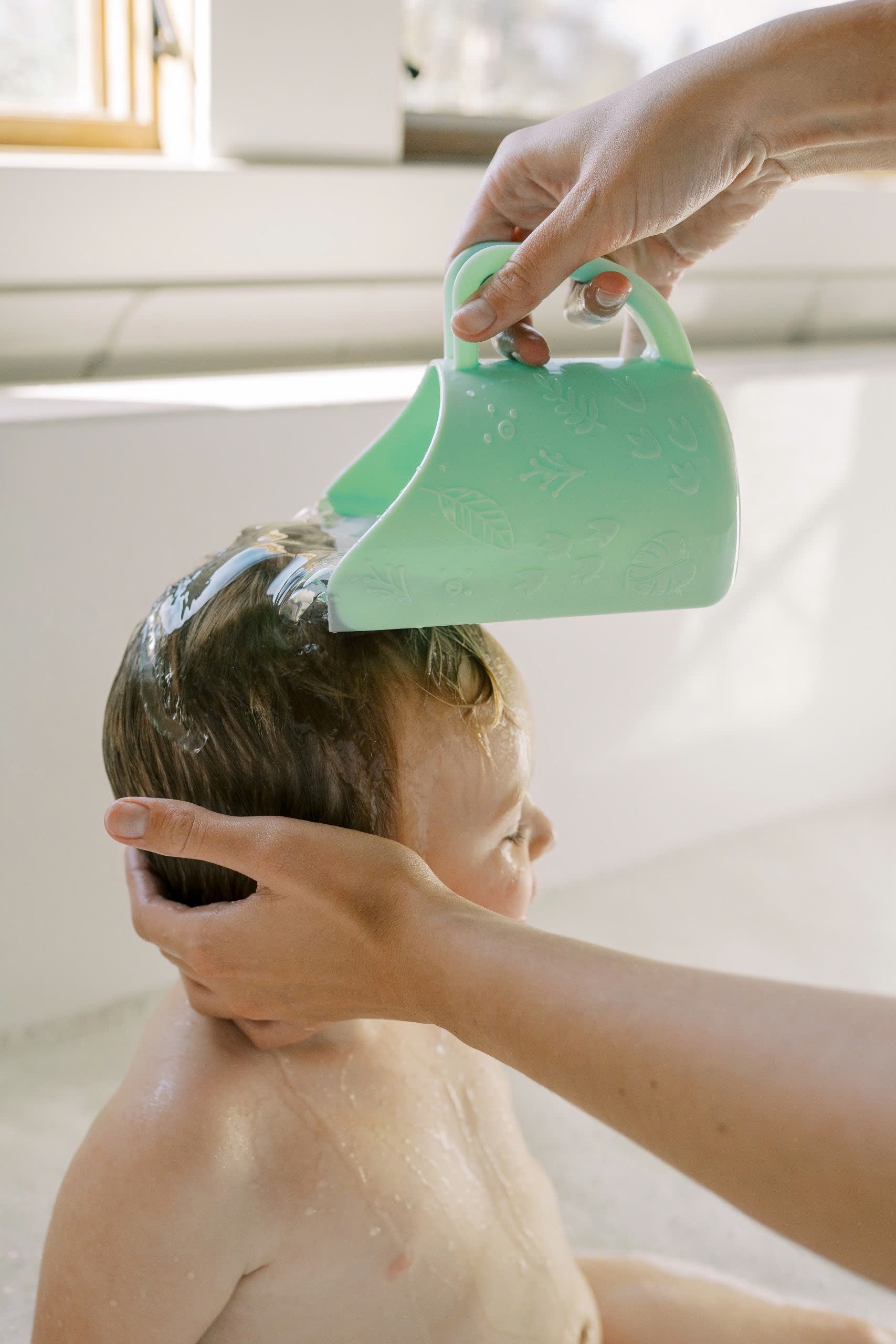 Viền cốc linh hoạt được thiết kế để hướng của dòng nước và xà phòng tránh khỏi mặt và tai bé