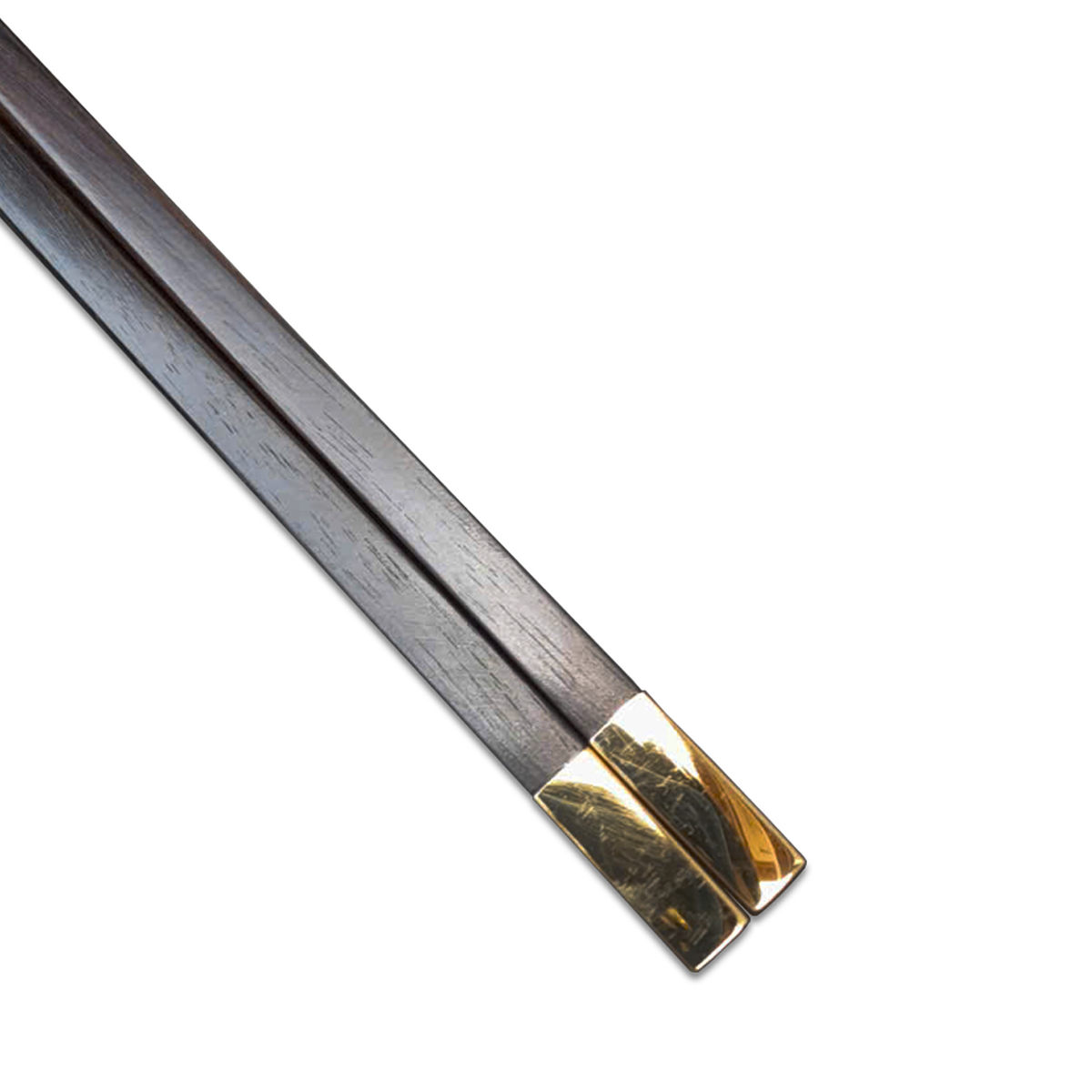 Đũa gỗ Trầm Thị Ghép Đồng sang trọng được trau chuốt thủ công tỉ mỉ từ gỗ trầm thị và đồng nguyên chất. Đồng được cắt khối vuông vức, ghép chắc chắn ở phần đầu đũa, chính vì thế người dùng sẽ có cảm giác khá nặng tay cầm. Đầu gắp còn lại được giũa nhọn vừa phải, tiện dụng.