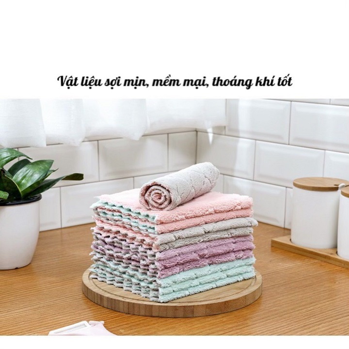 Bộ 10 khăn lau 2 mặt siêu thấm- Khăn lau không phai màu không rụng sợi- nhanh khô- Khăn lau bếp, khăn lau kính, lau bát lau tay Sợi vải mềm, khả năng thấm hút