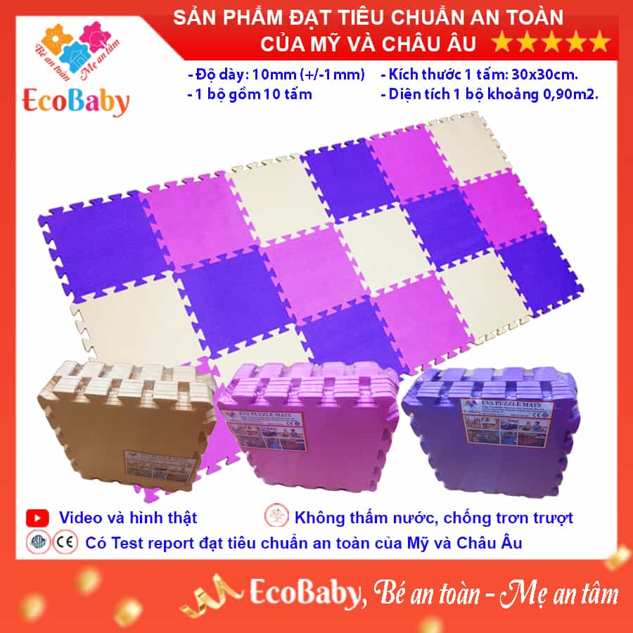 ✨Bộ 10 tấm Thảm xốp cho bé ECOBABY, thảm xốp đạt tiêu chuẩn Mỹ và Châu Âu, độ dày khoảng 1cm, kích thước 1 tấm 30x30cm - Màu trơn