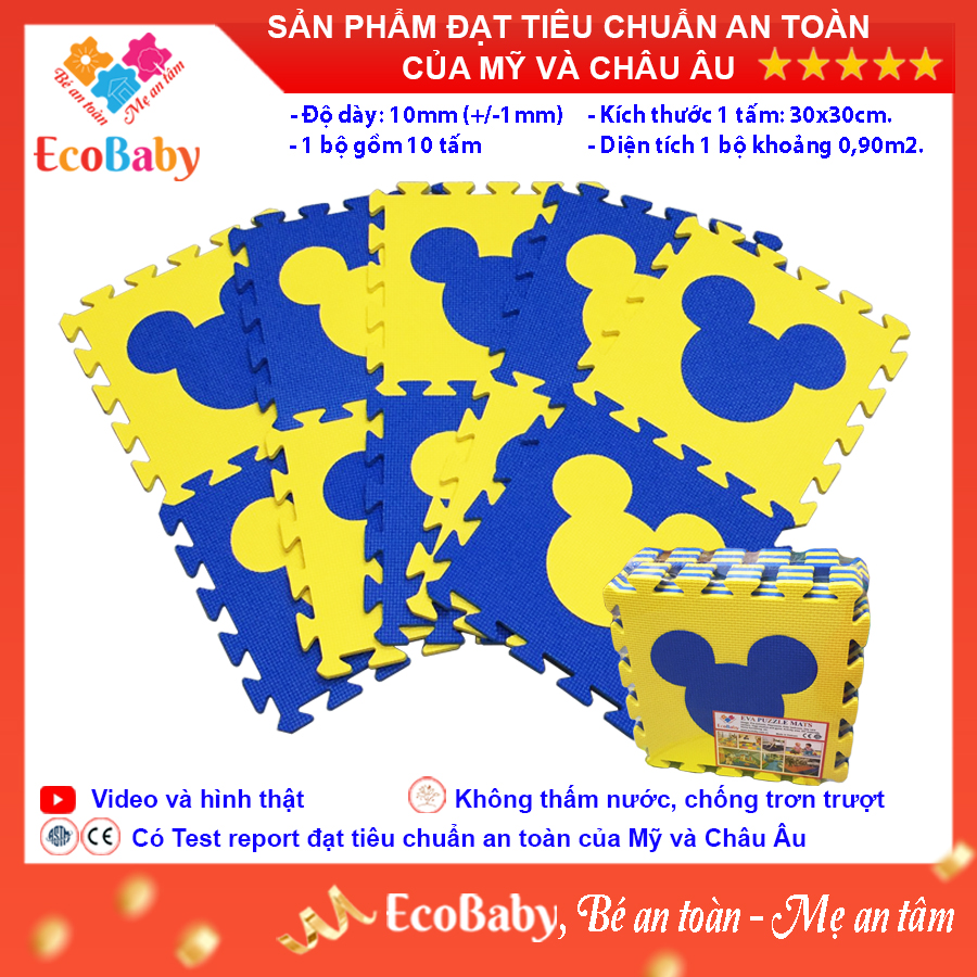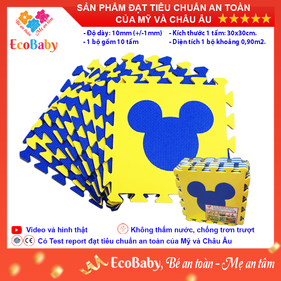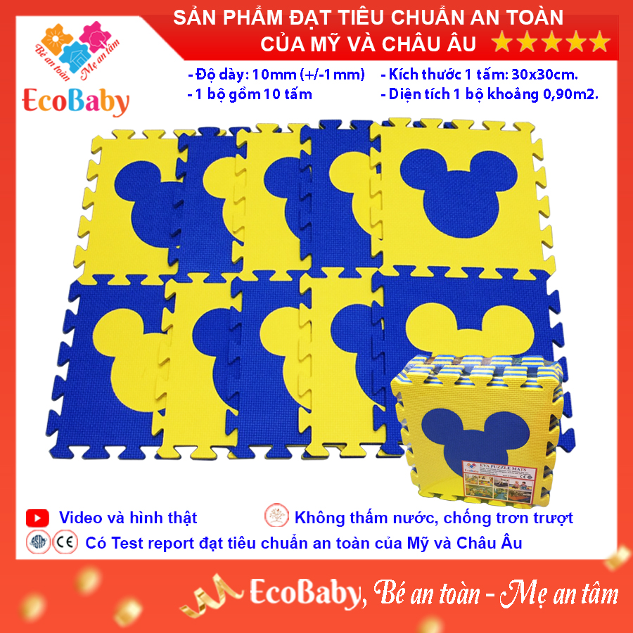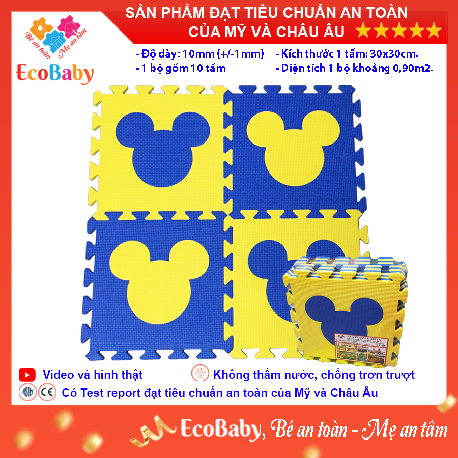 ✨Bộ 10 tấm Thảm xốp cho bé ECOBABY, thảm xốp đạt tiêu chuẩn Mỹ và Châu Âu, độ dày khoảng 1cm, kích thước 1 tấm 30x30cm - Mickey