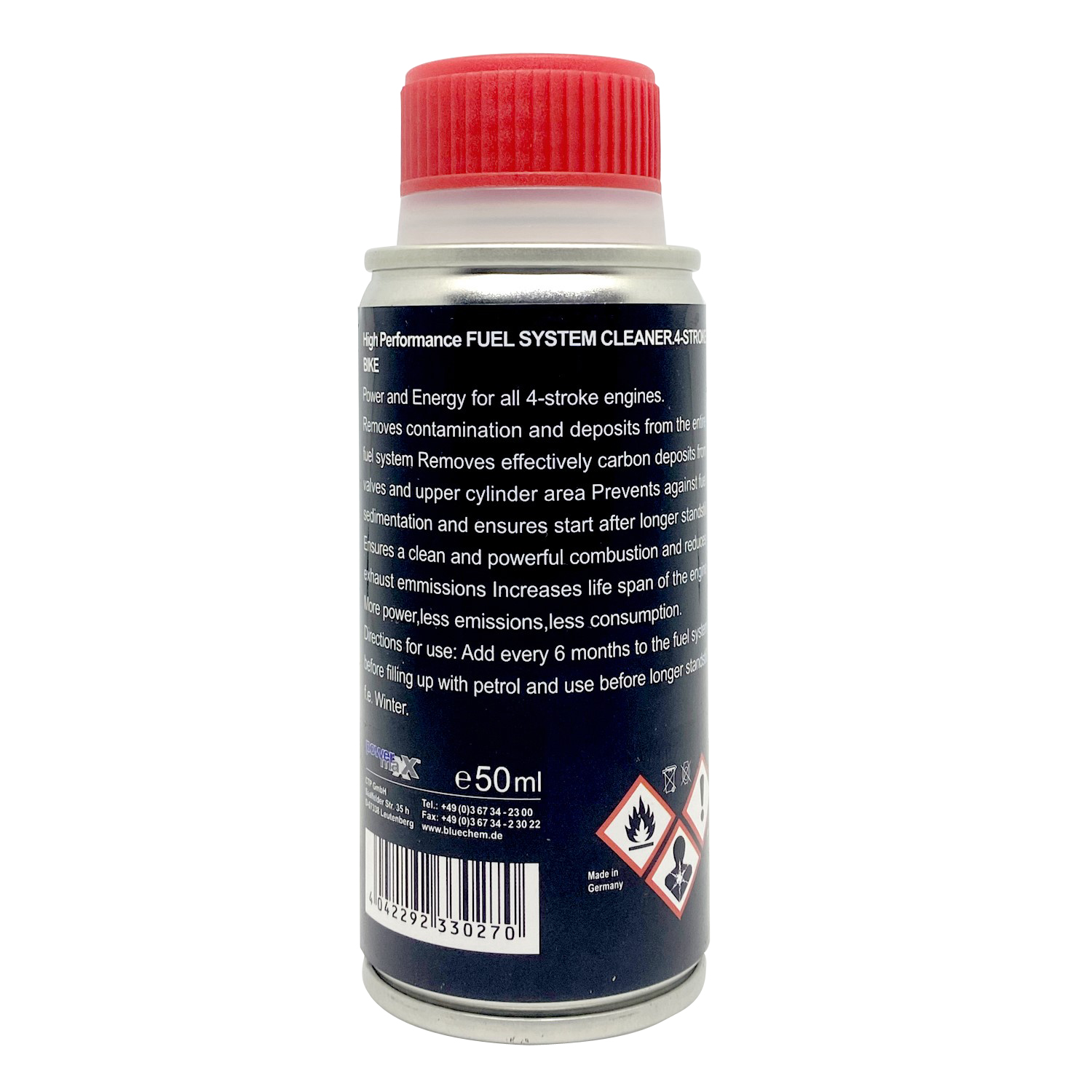 - Dùng định kỳ mỗi 3.000km để máy móc luôn được bảo vệ tốt nhất. Lưu ý không sử dụng phụ gia nhớt cho xe quá cũ, có ODO trên 100.000km, có dấu hiệu rò rỉ nhớt dẫn đến khói trắng, xe bị thiếu nhớt, khô nhớt. Vui lòng liên hệ với shop để được tư vấn tốt hơn. Giới thiệu Phụ gia xăng cho xe máy Bluechem 33027 Phụ gia xăng cho xe máy Bluechem 33027 giúp làm sạch cặn bẩn trong bình và ống dẫn xăng, kim phun xăng, muội than và tạp chất trong buồng đốt. giúp phục hồi động cơ, tiết kiệm nhiên liệu và tăng tốc dễ dàng. Phụ gia xăng cho xe máy Bluechem 33027 được cấp chứng nhận TUV về an toàn và hiệu quả và Công nghệ duy nhất trên thế giới hiện nay kết hợp làm sạch và bảo vệ một cách toàn diện nhất.