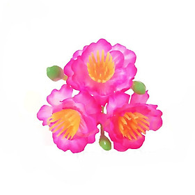 Hoa đào giả dạng chùm gồm hoa, nụ. Mỗi chùm hoa có 3 bông hoa mai vàng và 3 nụ mai xanh