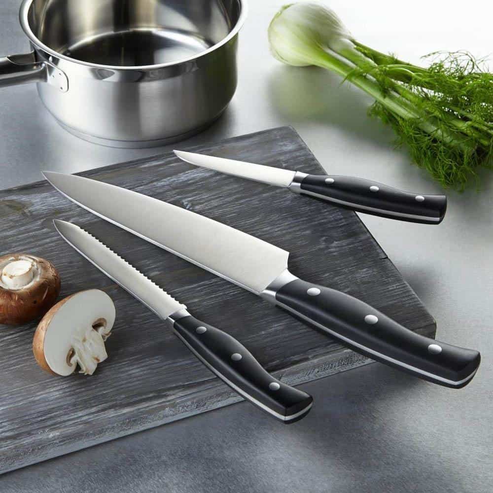 Nhân 3 tiện ích với 3 sản phẩm trong 1 bộ sản phẩm Bộ 3 Dao Roesle Pura 13077 bao gồm 1 dao gọt, 1 dao đa năng, và 1 dao đầu bếp với các ứng dụng cụ thể: