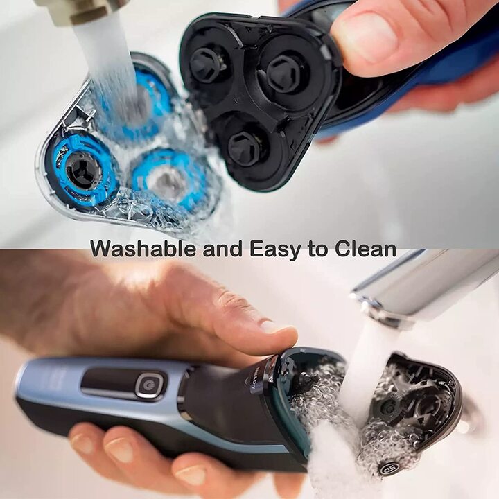 - Chọn cách cạo râu bạn thích. Với đầu bịt Khô & Ướt, bạn có thể chọn cạo khô nhanh và thoải mái. Hoặc bạn có thể cạo ướt với kem cạo râu hay bọt cạo râu, kể cả khi tắm. Reset lại máy cạo râu sau khi thay thế đầu cạo