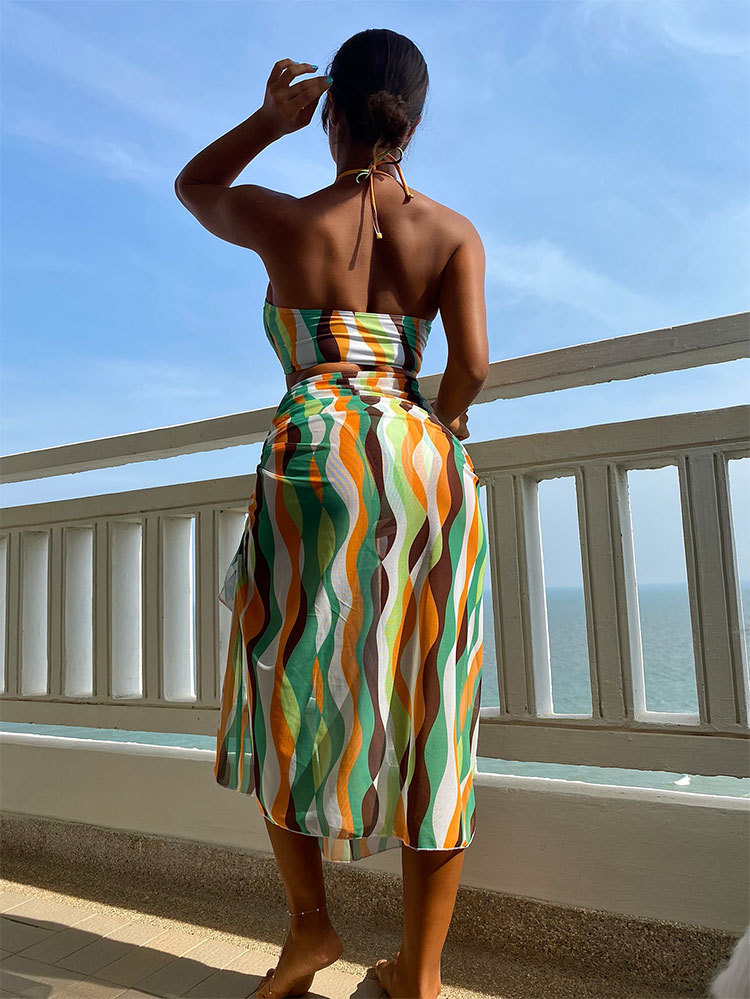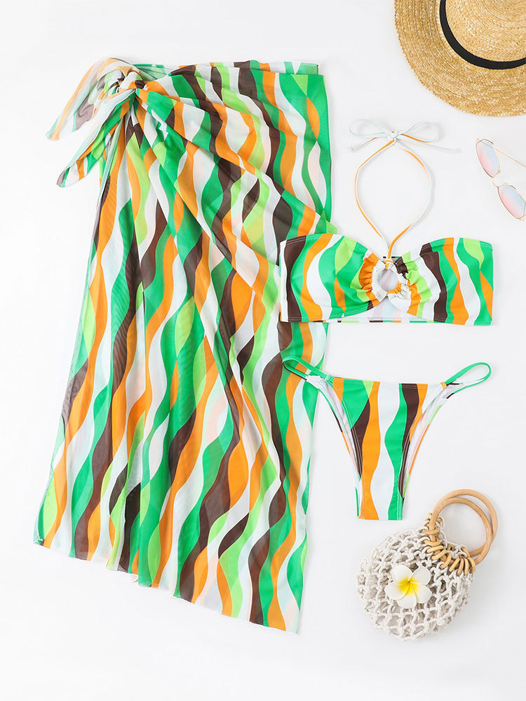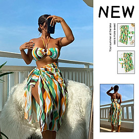 ✨Bộ 3 mảnh áo tắm xẻ tà váy bikini đi biển in hình nữ