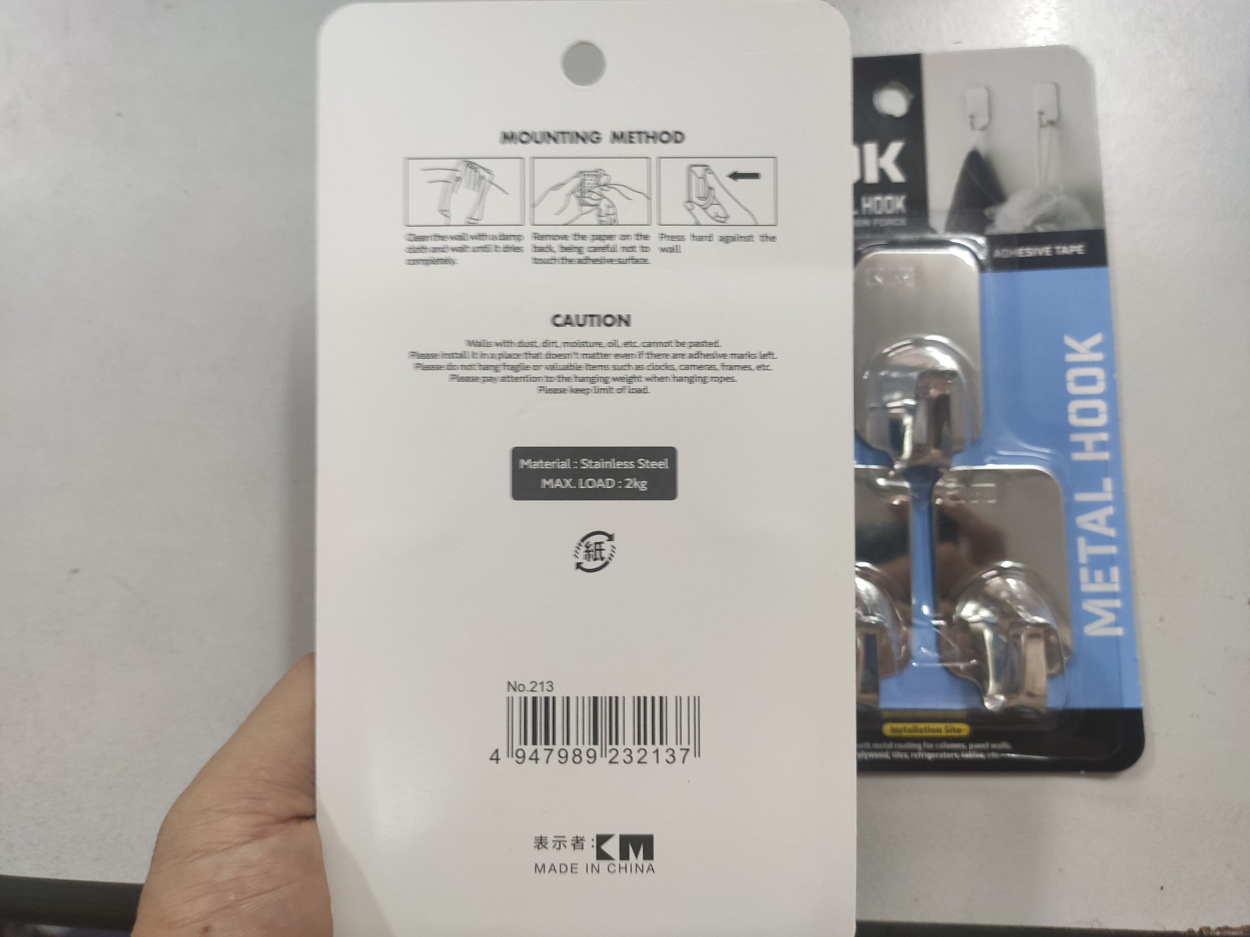 - Móc dán tường 2kg KM-213 dán được lên những bề mặt có môi trường ẩm ướt bao gồm bề mặt kính, gương, gạch men, gỗ và bề mặt sơn.
