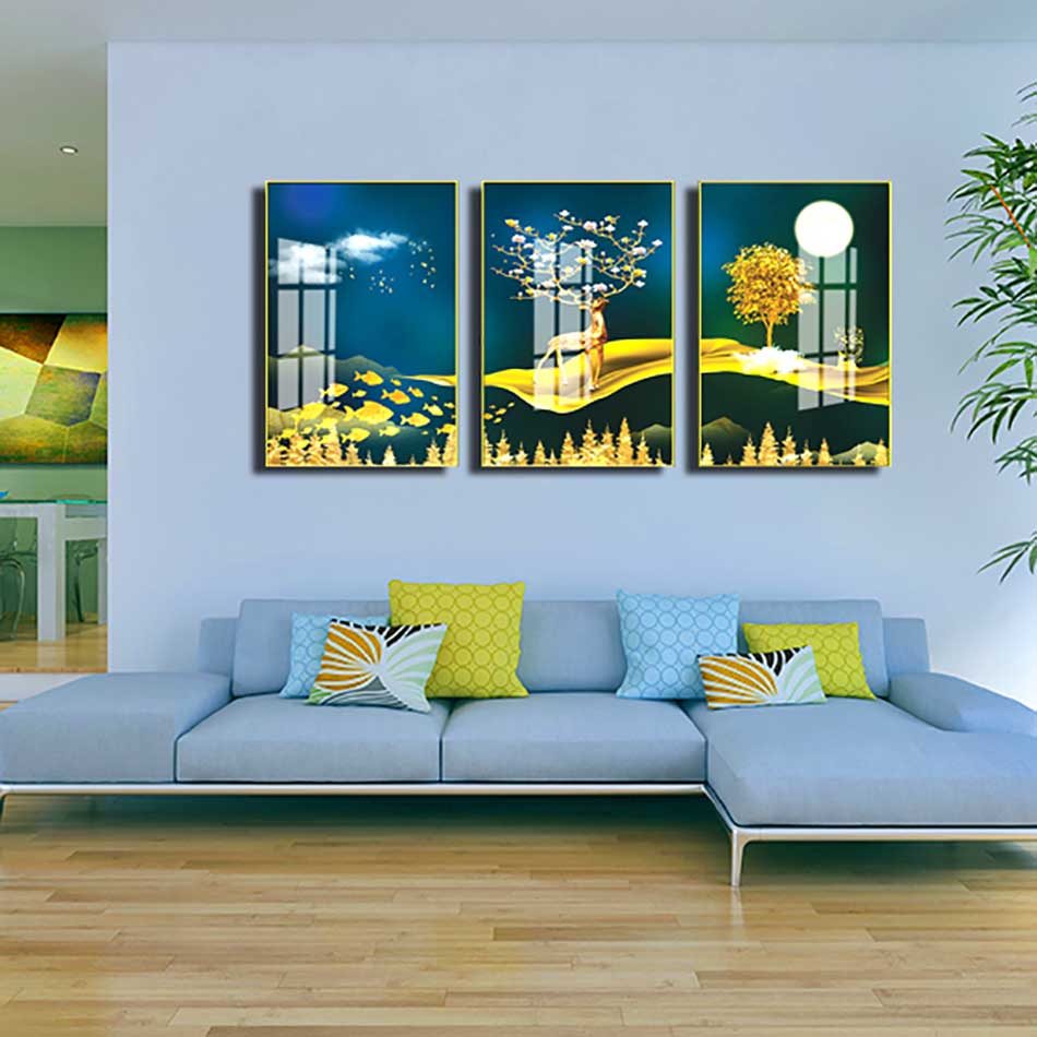 ✨Bộ 3 tranh mica cao cấp Hươu tài lộc nghệ thuật - MK062