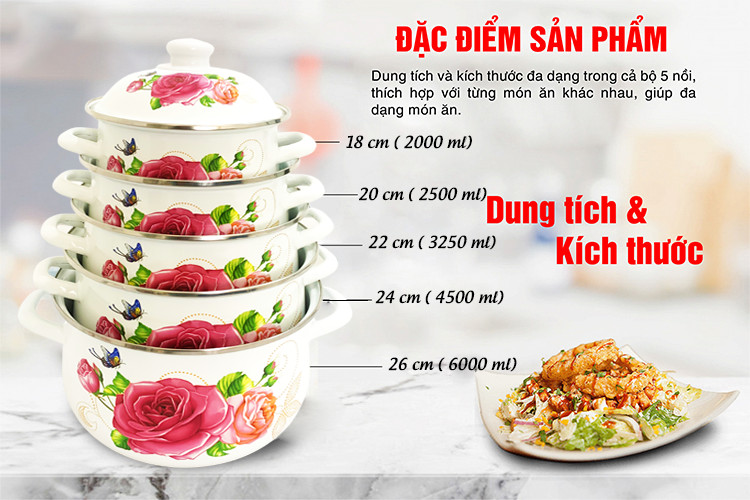 BỘ 5 NỒI TRÁNG MEN CAO CẤP GALEN G010