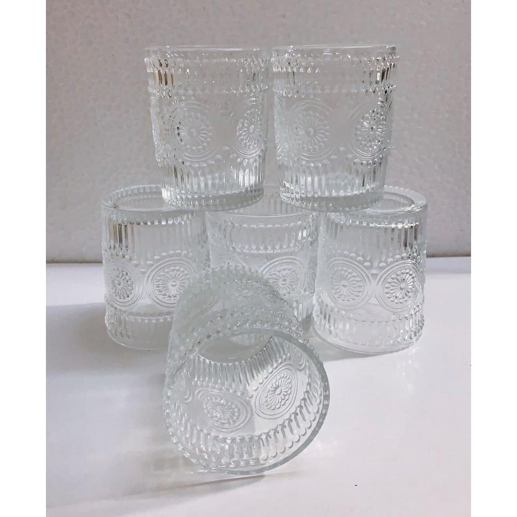 ✨Bộ 6 ly thủy tinh chịu nhiệt cao cấp dùng uống nước hoặc rượu tây vân trống đồng trắng không viền vàng 315ml