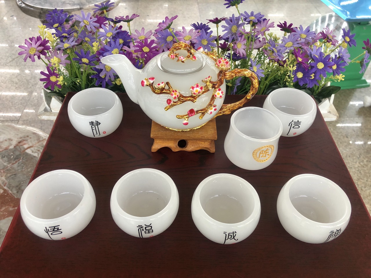 Bộ ấm trà bạch ngọc hoa mai