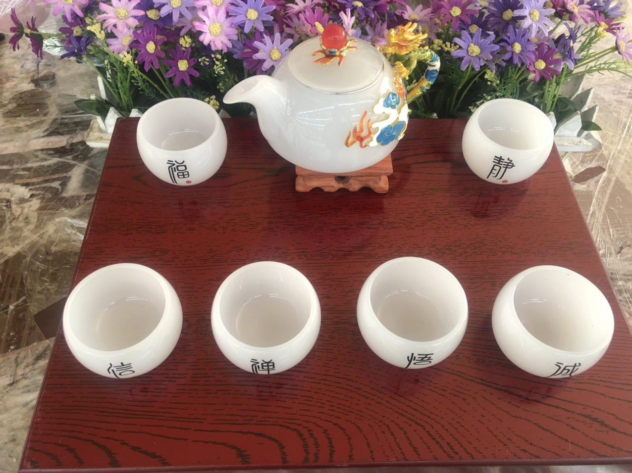Chất liệu: Đá bạch ngọc Bao gồm: 01 ấm; 06 chén, 1 tách đựng nước thừa và hộp đựng cao cấp Kích thước : Dài 36 cm x 25 cm x 13 cm ( Bao