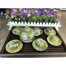 Chất liệu: Đá ngọc Serpentine Bộ sản phẩm gồm: 7 dĩa, 6 ly và 1 ấm trà Dùng để uống trà hoặc làm quà biếu tặ