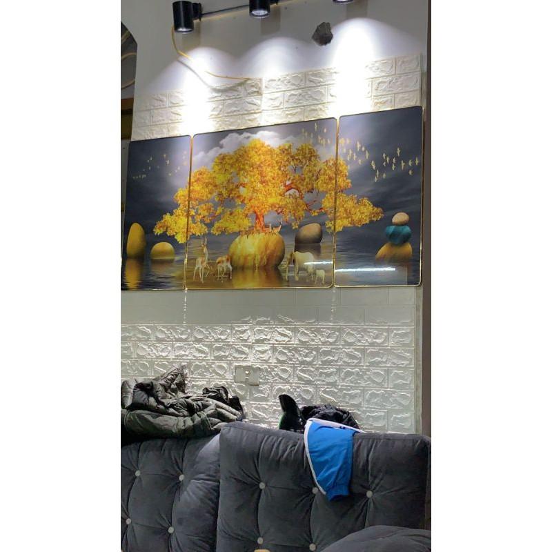 ✨Bộ ba tranh tráng gương cao cấp loại 1 hươu vàng dưới bóng cổ thụ