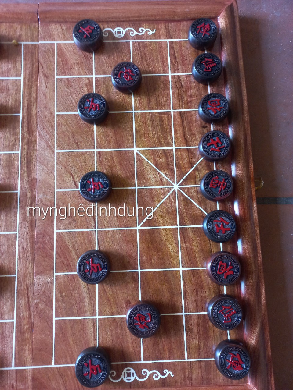 Bàn cờ gỗ hương vân kèm quân gỗ trắc đỏ