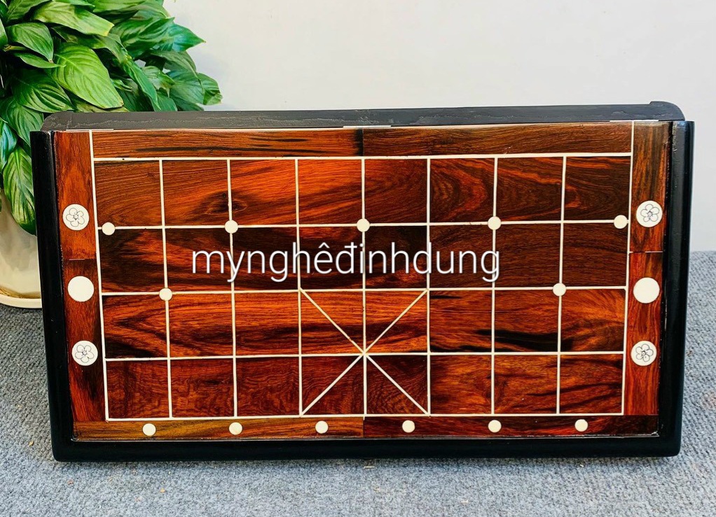 _ Hộp đựng quân cờ gỗ hương + quân gỗ trắc được làm bằng chất liệu gỗ tự nhiên 100% _ Kt hộp 28×20×8cm _ Kt thước quân cờ tròn 4.0 dầy 1.5cm _ Hộp