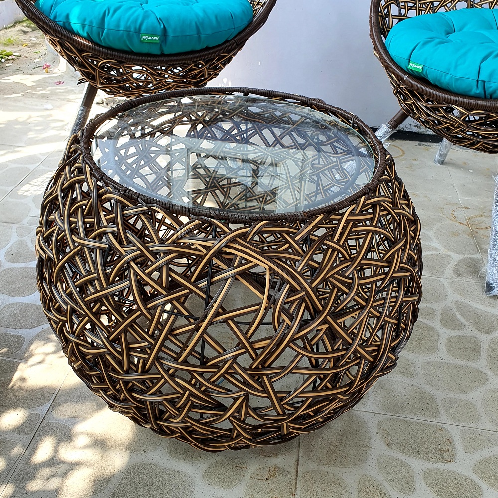 Chất liệu : sắt được tĩnh điện và được gia công sợi giả mây tăng tính thẩm mỹ và độ bền cao khi để ngoài trời