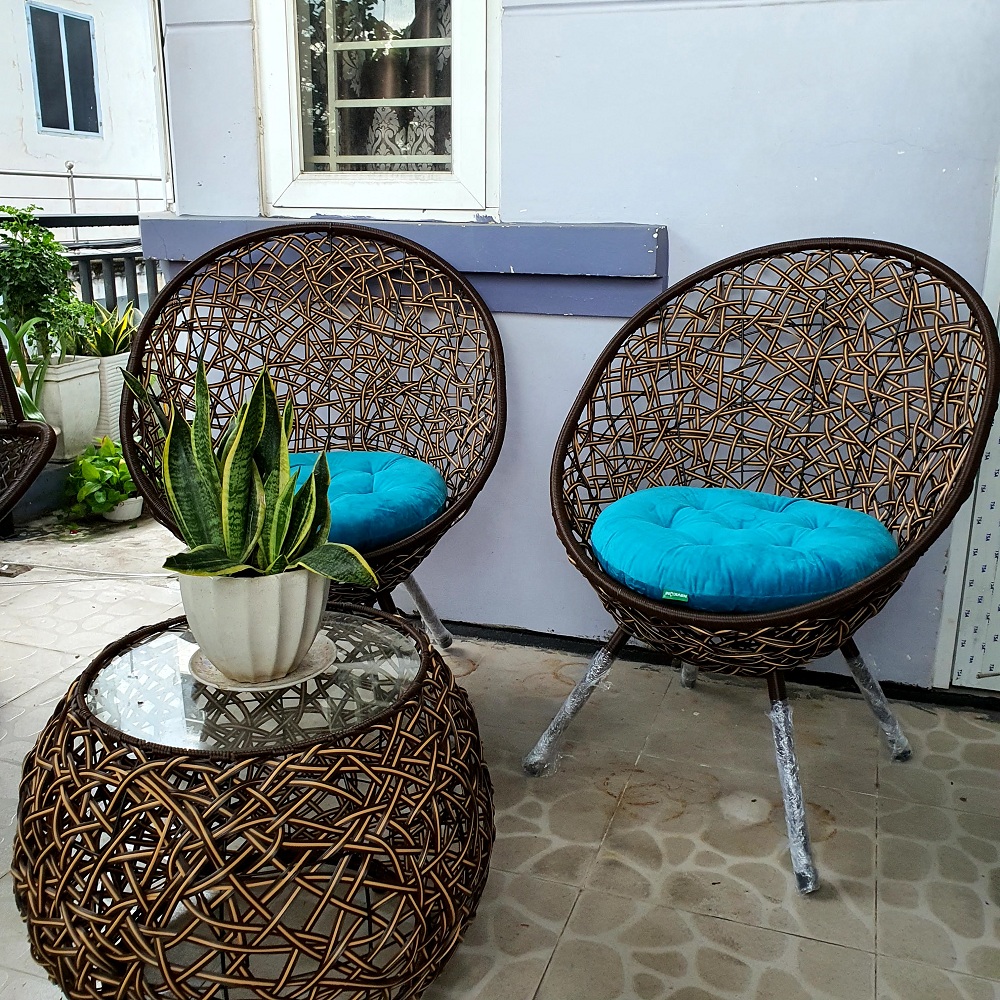 Chất liệu : sắt được tĩnh điện và được gia công sợi giả mây tăng tính thẩm mỹ và độ bền cao khi để ngoài trời