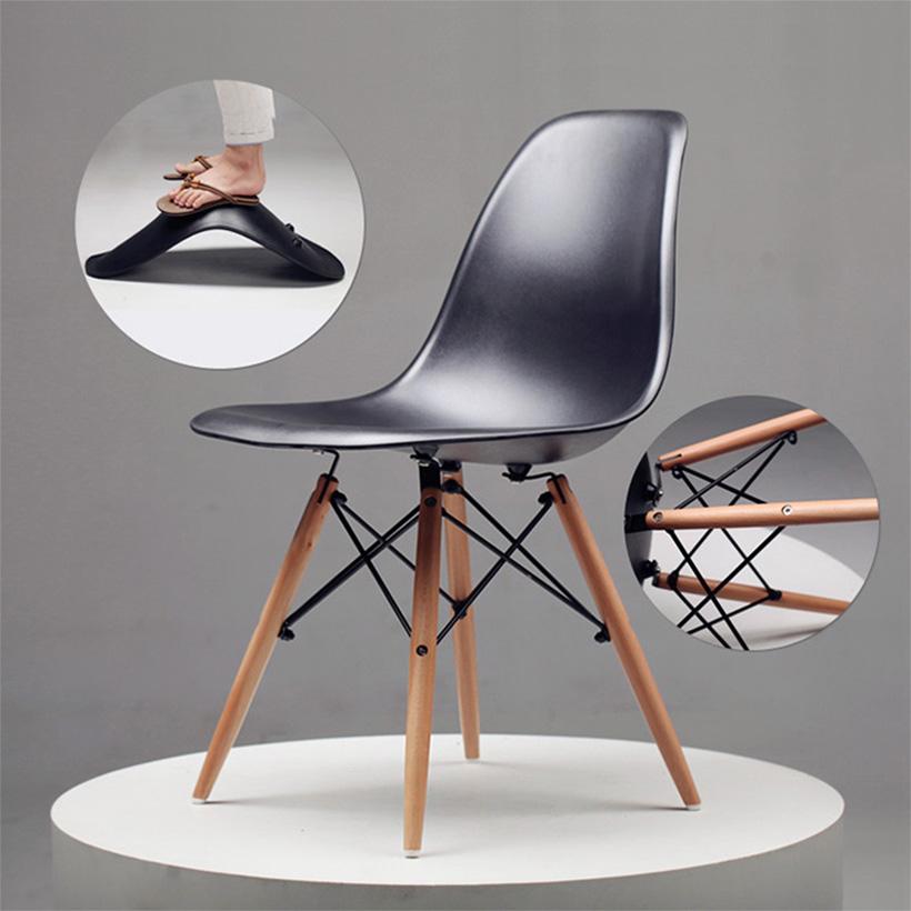 Ghế Eames được làm từ nhựa PP mờ cao cấp, màu sắc đa dạng giúp người dùng dễ dàng lựa chọn theo phong cách riêng. Bộ khung chân được làm từ gỗ tự nhiên, kết cấu đan chéo vững chắn, độ cao phù hợp với các loại bàn thông dụng (75cm). Chính thiết kế mang hơi hướng cổ điển, gợi nhớ hình ảnh tháp Eiffel của một Paris hoa lệ là điểm nhấn tạo nên sức hút đặc biệt của loại ghế này.