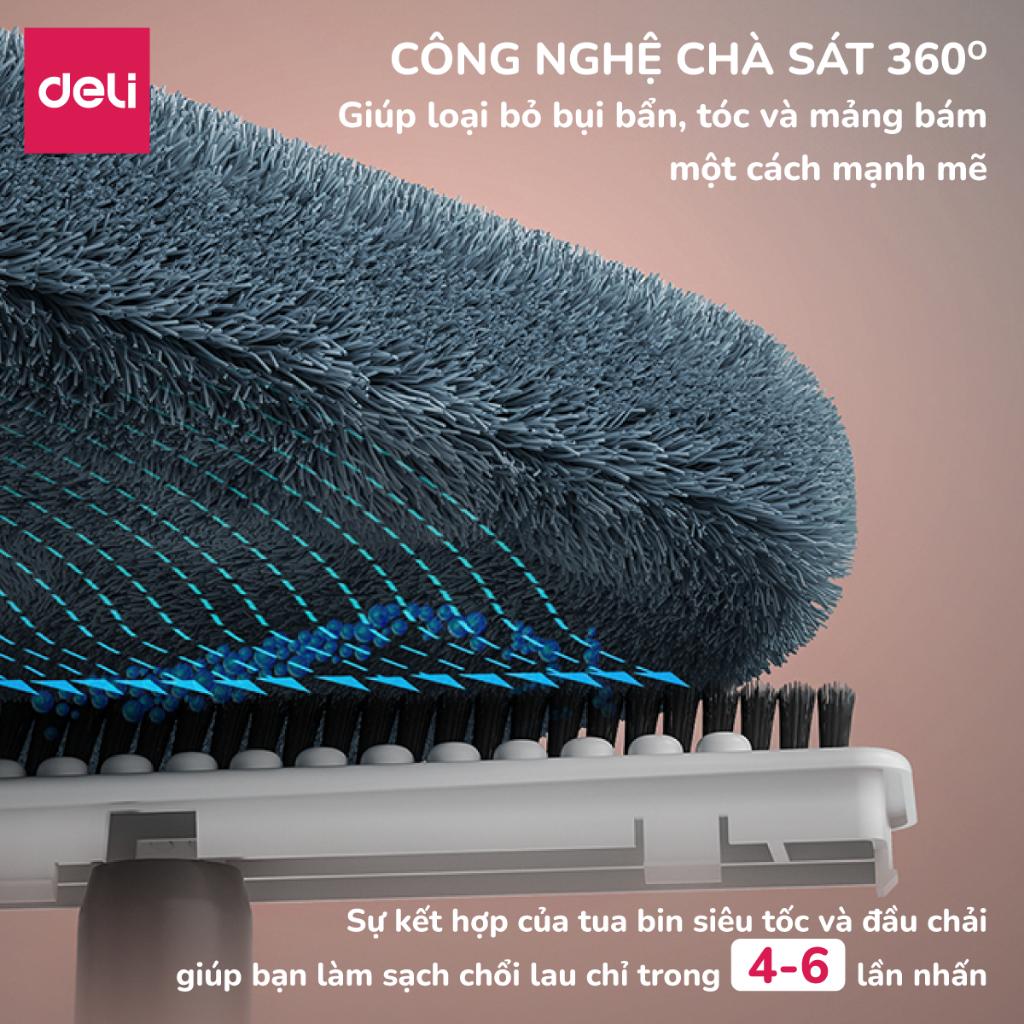 Ra mắt dòng sản phẩm lau dọn nhà cửa Vusign by Deli Cây lau nhà thông minh 360 độ kèm thùng tách nước bẩn với khả năng lau sạch sàn nhà một cách nhanh chóng và nhẹ nhàng, phù hợp với mọi loại bề mặt sàn như sàn gạch, sàn gỗ, sàn đá, tường ốp gạch và mặt kính, phù hợp với mọi không gian và diện tích nhà ở, bộ cây lau nhà được thiết kế thông minh và cực kỳ gọn gàng giúp tiết kiệm không gian bảo quản đặc biệt là nhà chung cư hoặc các căn nhà có không gian hạn chế.