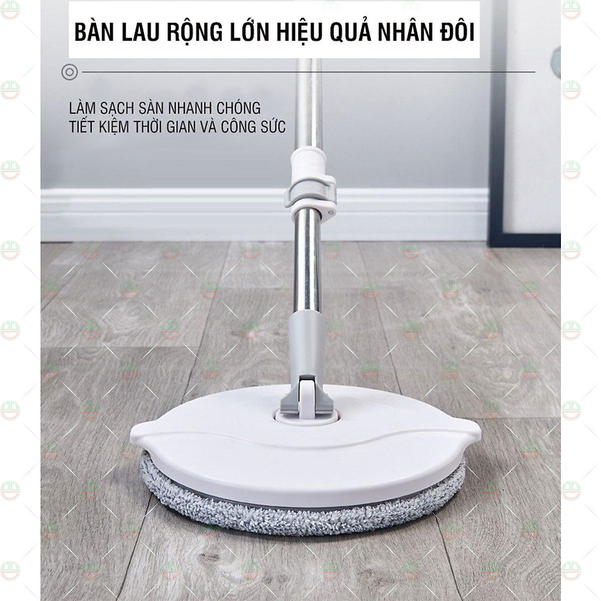 Bàn lau hình tròn, đường kính 25cm có thể xoay 360 độ tiện lợi, bàn lau to giúp lau nhanh hơn và hiệu quả hơn. Giẻ lau chất liệu microfiber rất dày thấm hút nước cực tốt, hút bụi và lông tóc hiệu quả.