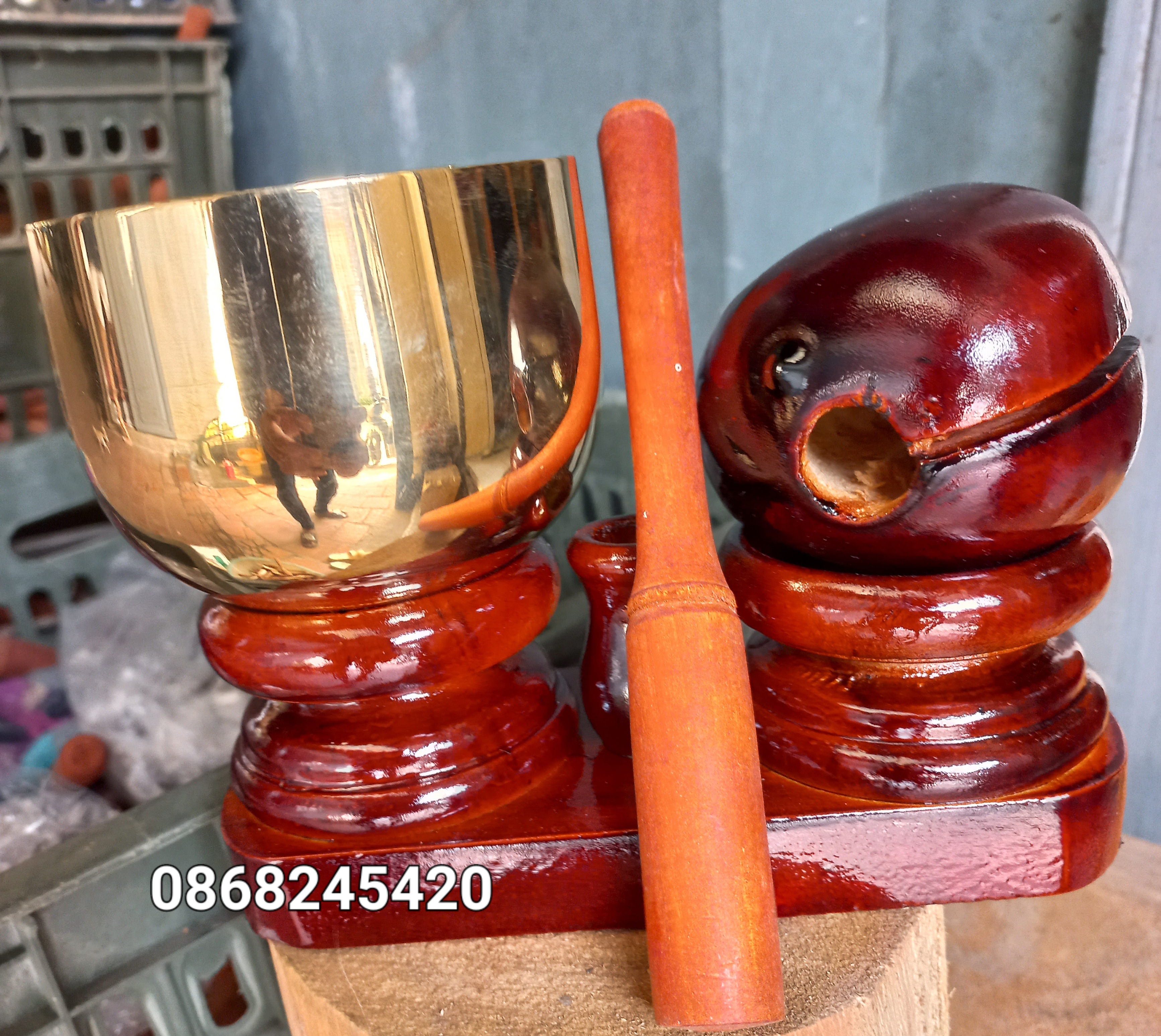 ✨Bộ chuông mõ tụng kinh bằng gỗ mít kt 6cm + cả chân đế