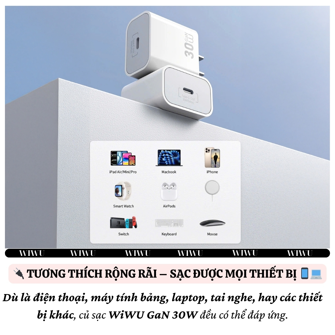 Công suất 30W mạnh mẽ – Hỗ trợ sạc nhanh cho điện thoại, máy tính bảng, laptop & nhiều thiết bị khác.