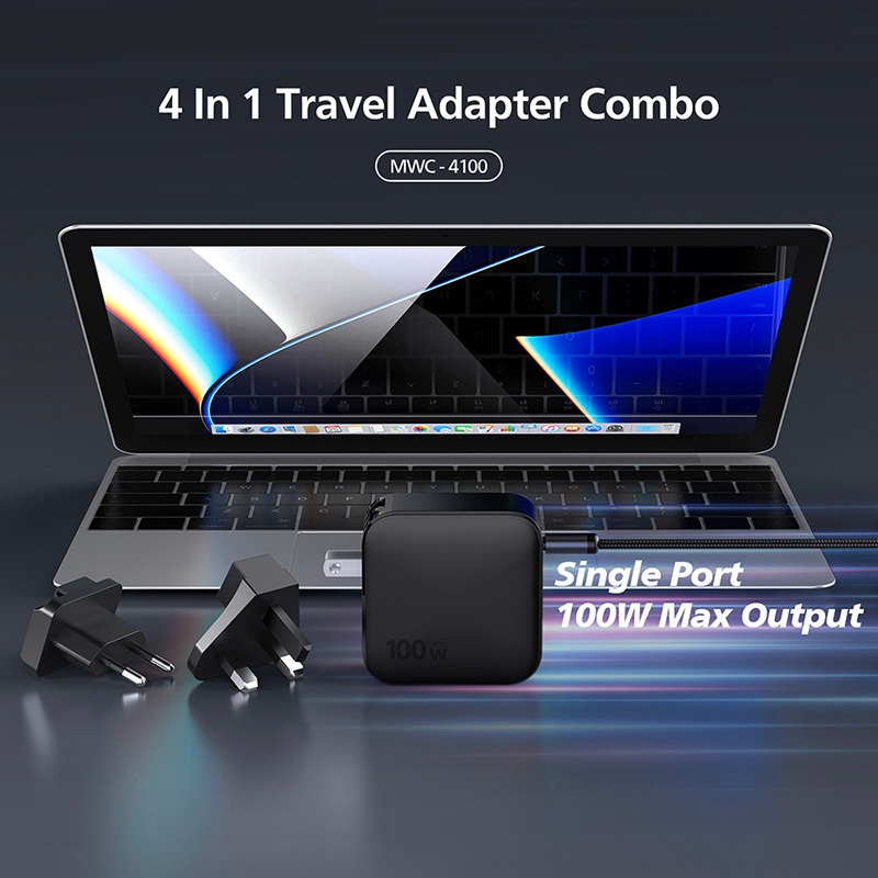 Bộ củ sạc + Cáp MicroPack POWER SERVER GaN 100W MWC-4100 Nhiều Đầu Ra 03xUSB-C Và 01xUSB-A Sạc Siêu Nhanh Nhỏ Gọn
