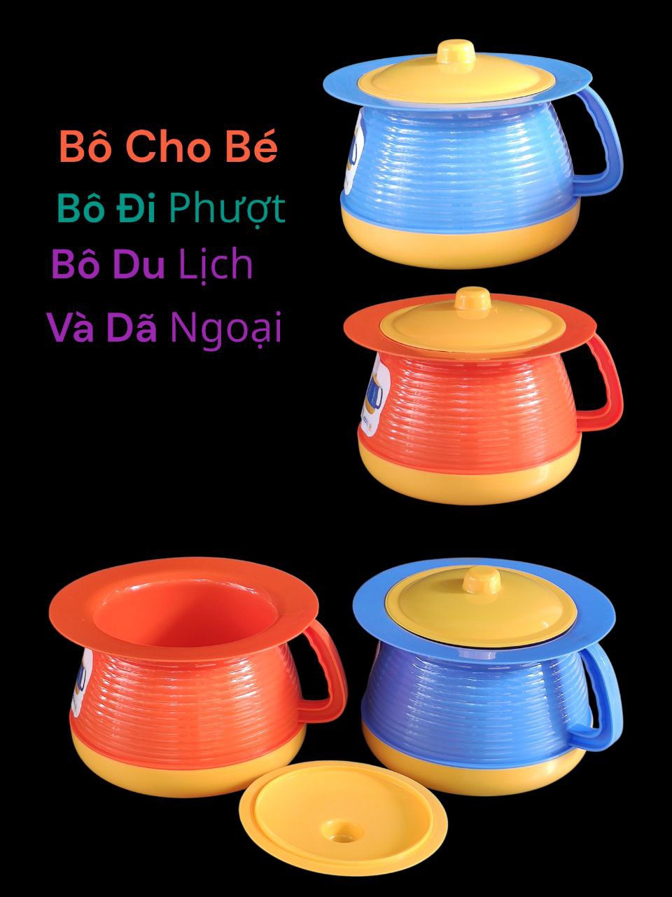 Bô có tay cầm chắc chắn, giúp di chuyển dễ dàng. Nắp đậy kín đáo giữ vệ sinh tuyệt đối, ngăn mùi hiệu quả, đảm bảo sự thoải mái cho người dùng.