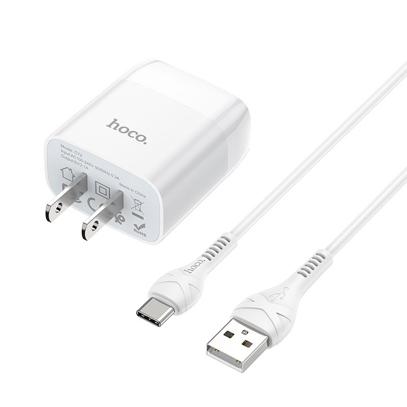 Bộ Dây Và Cóc Sạc Nhanh Hoco C72 2.1A Cổng Type-C - Hàng Chính Hãng #capsac #bocapsac #hoco #congtypec #c72 Chất liệu: Nhựa PC chống cháy cao cấp, an toàn cho người dùng Chiều dài