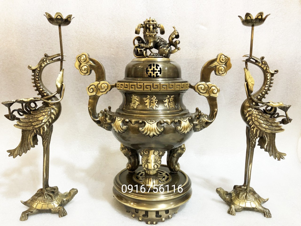 Bộ đồ thờ bằng đồng gồm những gì - Bộ đỉnh đồng ngũ sự | Mỹ Nghệ Âu Lạc
