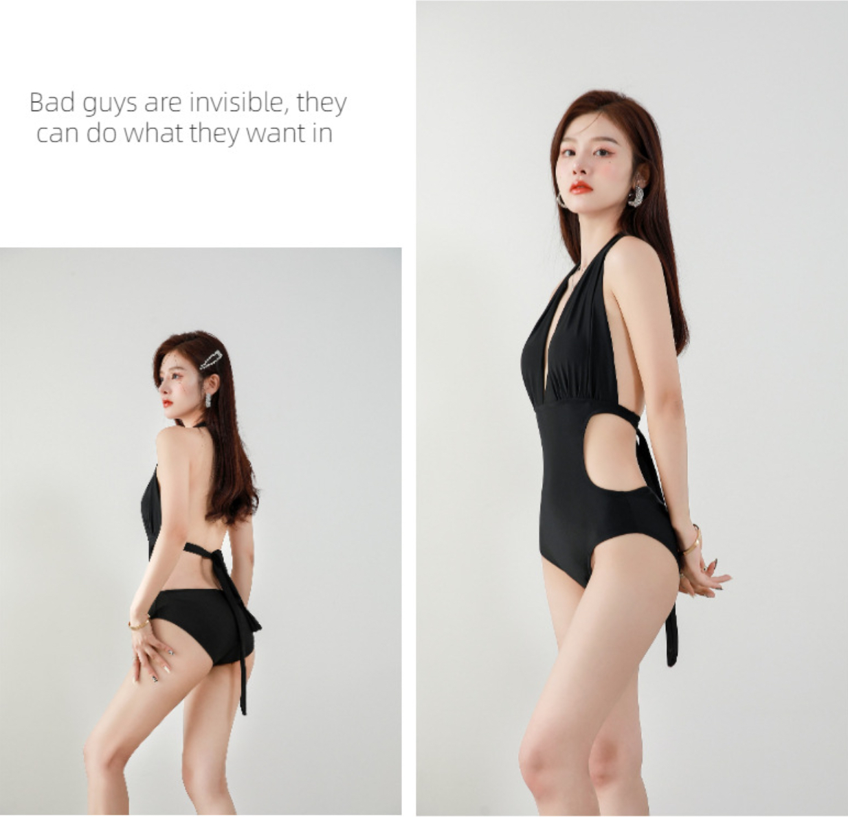 - Mẫu bikini dáng liền thân ôm sát basic với điểm nhấn cutout phần eo, tạo cảm giác vòng 2 nhỏ gọn hơn. - Cổ áo được cắt khéo, độ sâu vừa đủ để trông