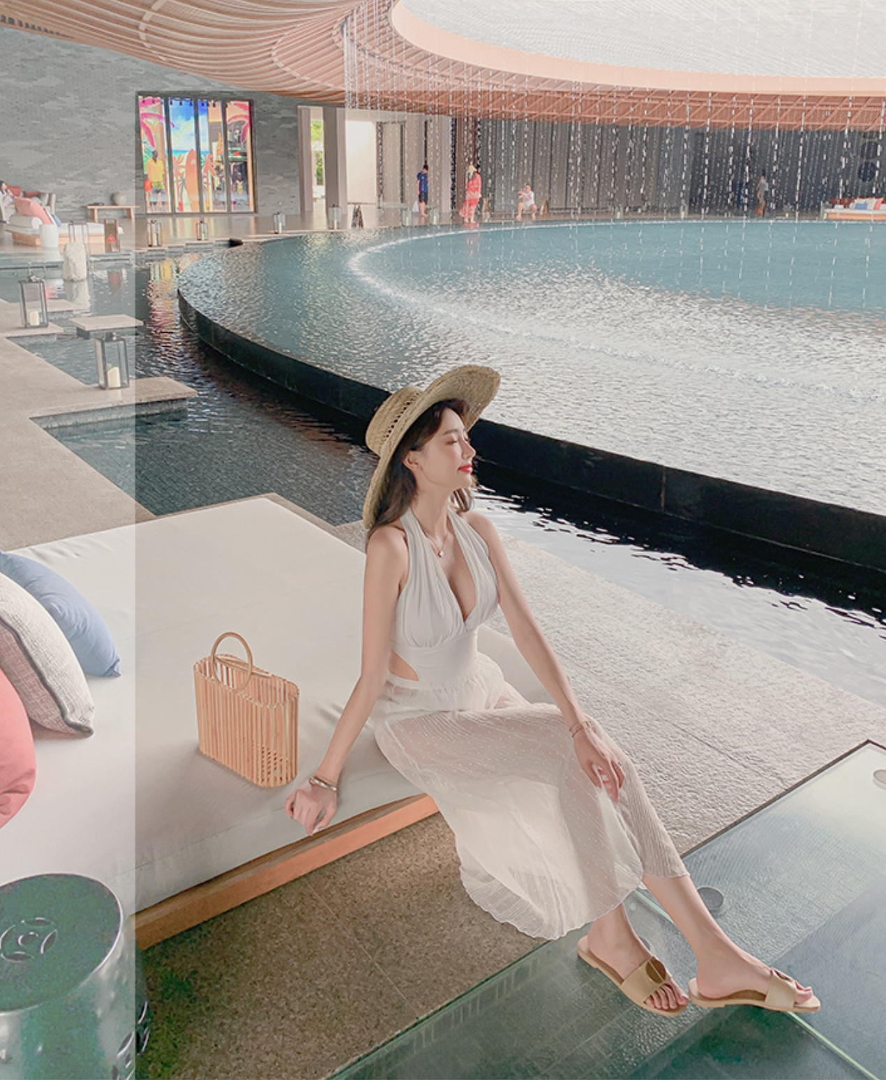 - Đơn giản nhưng vẫn cực kì nổi bật nhờ đường cong ôm sát, cách điệu với lớp bèo vừa che vai, vừa tôn vòng một các nàng ạ. - Bikini mặc đi biển làm