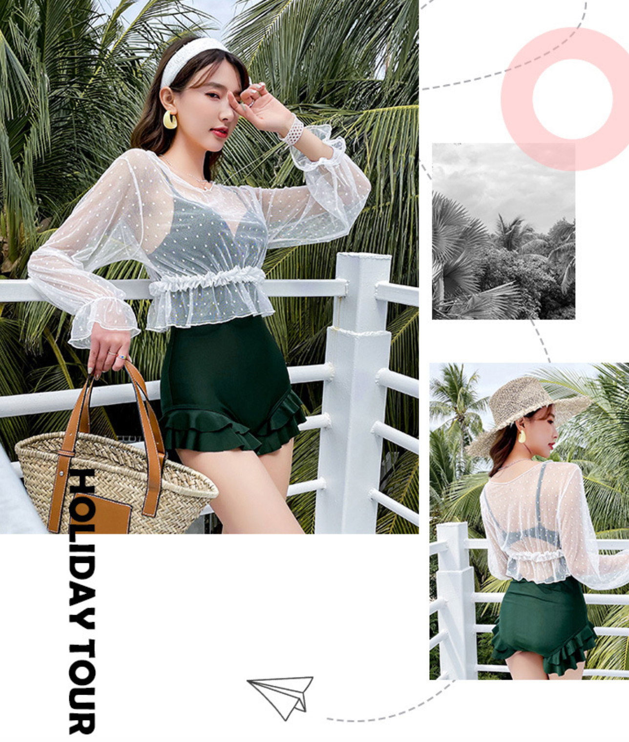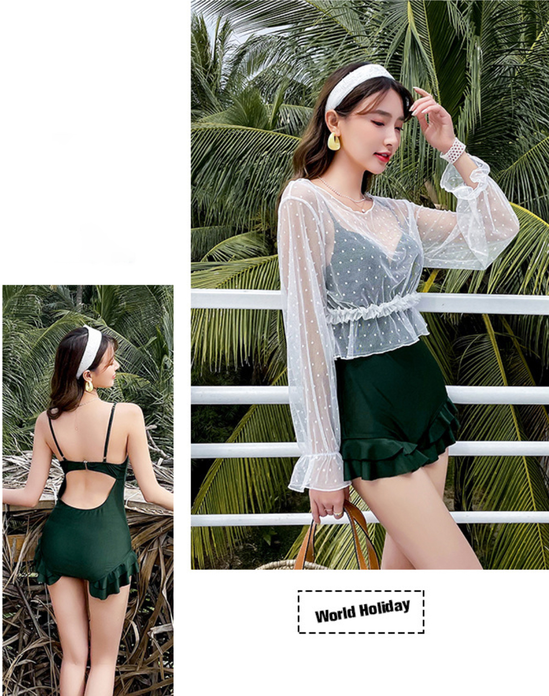 - Tự tin bung lụa lên chị em nha, đi biển, đi bơi là phải diện đồ bơi mới chuẩn ạ. - Mẫu bikini dáng váy, chiết eo giúp vòng 2 gọn gàng hơn, màu