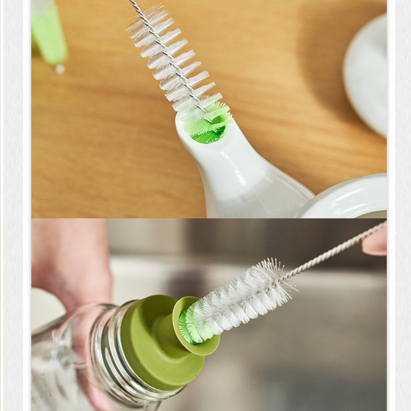 - 2 chiếc to dài 18 cm Chất liệu : thép không gỉ, nhựa cao cấp và nylon Màu sắc : xanh lá Giới thiệu Trên đầu cọ có tấm mút giúp cho việc làm sạch được dễ dàng và nhanh chóng hơn, đảm bảo an toàn vệ sinh cho bé yêu nhà bạn. Làm sạch dễ dàng các loại bình như bình sữa, đầu vòi ấm trà, ấm tách, ly nhỏ... hay đầu ty aillicon của bình sữa em bé mà không làm xước hay hỏng. Thân được làm bằng thép không gỉ, bền chắc, có thể uốn cong, thẳng luồn vào các ngõ ngách của bình để làm sạch tuyệt đối.