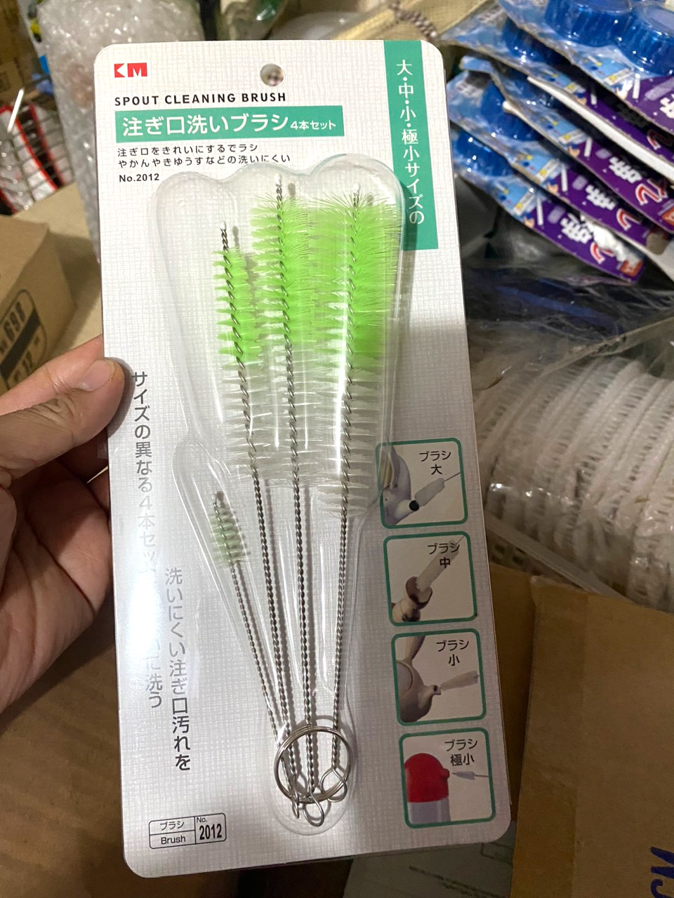 Mua tại TiktokBộ dụng cụ cọ rửa bình nước KM-2012 hàng Nhật Bộ sản phẩm 4 chiếc cọ gồm :