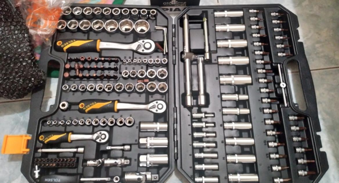 Bộ dụng cụ cầm tay 168 món Bao gồm: 1 búa nhổ đinh 8Oz 1 kìm kết hợp 7" 1 kìm mũi dài 6" 1 kìm bơm 10" 1 kìm tuốt dây 8,5" 1 tua