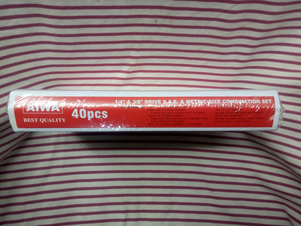 - + Bộ dụng cụ sửa chữa đa năng 40 món Aiwa có các đầu khẩu, tay siết, cần nối đều được làm bằng chất liệu thép có hàm lượng cacbon cao, siêu cứng, chịu lực tốt, không bị oxy hóa, thời gian sử dụng bền lâu. Không những thế, các đầu khẩu được gia công rất tỉ mỉ, công phu, đảm bảo trong quá trình tháo lắp không làm trầy xước bề mặt, hay làm cháy ren bu lông;