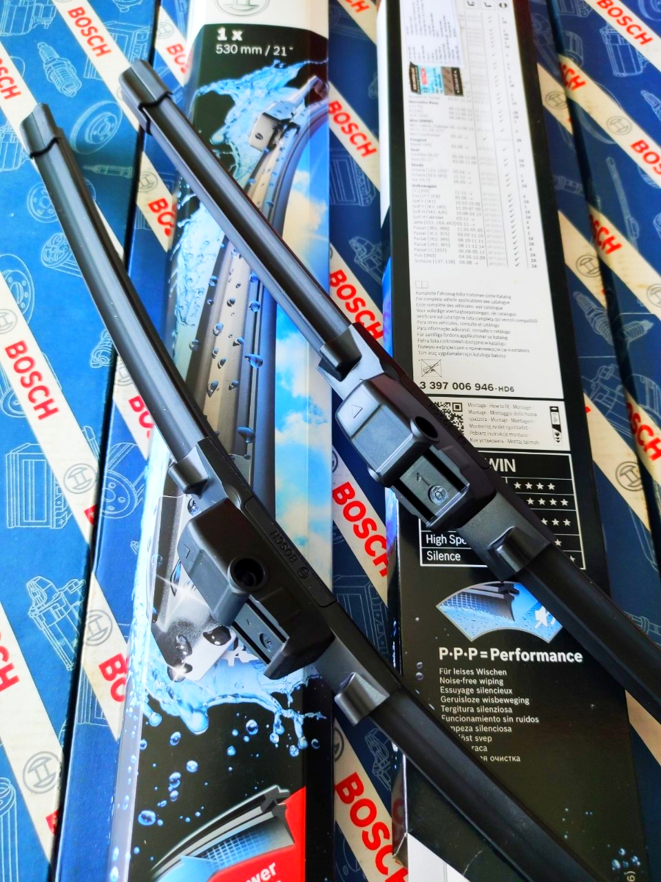 - Công nghệ Bosch P.P.P (Power Protection Plus) với lớp Graphite phủ bên ngoài lưỡi cao su giúp lau sạch hơn, chuyển động mượt mà không gây tiếng động, tăng cường khả năng chịu nhiệt