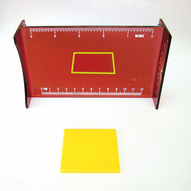 - Bộ Kiếng Đo Hình Chiếu Không Gian gồm một tấm kiếng mica màu đỏ trong loại tốt và một miếng nhựa xanh hỗ trợ.