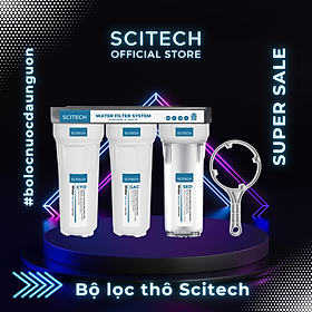 Bộ lọc nước sinh hoạt 10 inch 3 cấp lọc by Scitech giúp lọc sạch cặn bẩn, rỉ sét, rong rêu, chất hữu cơ và các tạp chất khác lẫn trong nước. Bộ lọc thích