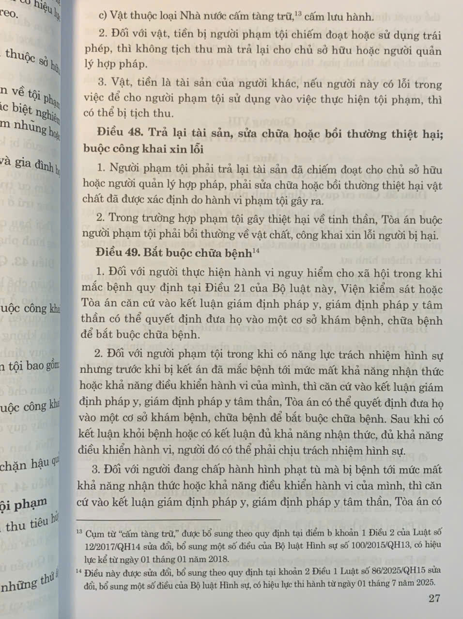 Cùng với những thay đổi quan trọng trong Hiến pháp và pháp luật cũng như trong tư duy lập pháp, bên cạnh đó, đã có những vướng mắc và bất cập bộc lộ trong thực tiễn áp dụng, Bộ luật Hình sự năm 2015 (sửa đổi, bổ sung năm 2017) và Bộ luật Tố tụng hình sự năm 2015 (sửa đổi, bổ sung năm 2021) tiếp tục được sửa đổi, bổ sung lần lượt bởi Luật số 86/2025/QH15 sửa đổi, bổ sung một số điều của Bộ luật Hình sự và Luật Sửa đổi, bổ sung một số điều của Bộ luật Tố tụng hình sự số 99/2025/QH15. Các bộ luật được sửa đổi, bổ sung đã đánh dấu một bước tiến quan trọng trong pháp luật, chính sách hình sự của Việt Nam với nhiều những thay đổi cần được kịp thời nắm bắt, cập nhật để nhanh chóng áp dụng thành công vào đời sống xã hội.