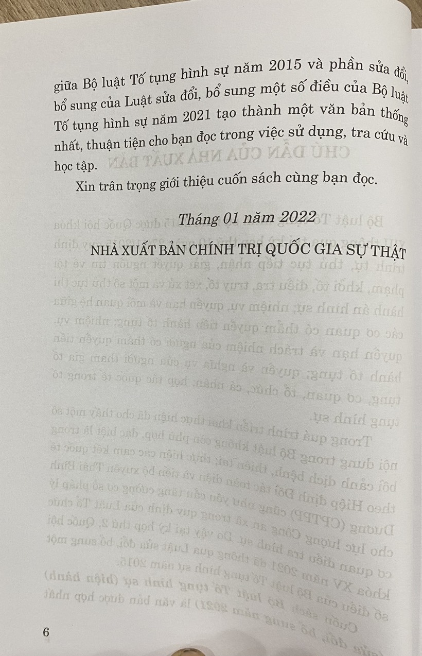 Phiên bản Bộ luật tố tụng hình sự năm 2015 (đính kèm 4 trang nội dung chỉnh sửa năm 2021), nên bạn đọc cân nhắc khi mua tham khảo Bộ luật tố tụng