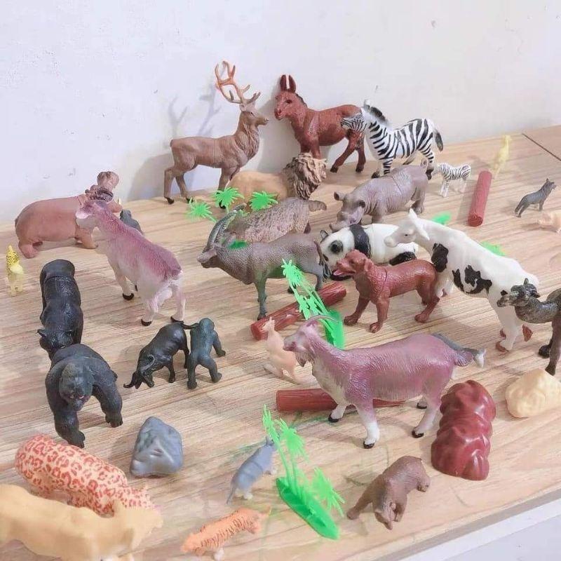 Bộ mô hình động vật 58 chi tiết thú rừng hoang dã nhựa an toàn giúp bé nhận biết thế giới xung quanh Bộ mô hình động vật nhỏ nhỏ, xinh xinh như này không